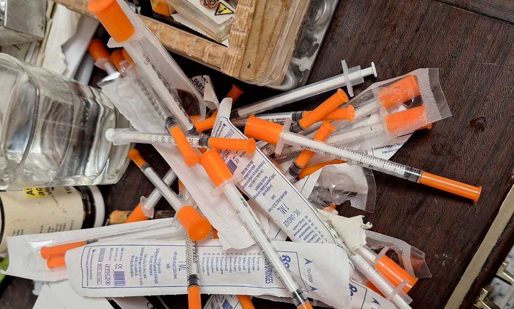 Ennyi fecskendőt találtak az óbudai lakásban