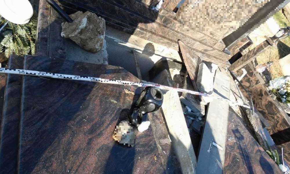 Aztán elkezdték a 2019-ben eltemetett férfi síremlékének fedlapját döngölni, ami ettől betört. Végül lemásztak a kriptába, s az ott talált koporsót felnyitva abból az elhunyt holttestét kiemelték, és a földfelszínre helyezték. A koporsót, valamint az elhunyt ruházatát átkutatták, azonban nem találtak általuk remélt értékeket. Üres kézzel távoztak, de a rongálással – a család szerint – 4-5 millió forint kárt okoztak nekik.
